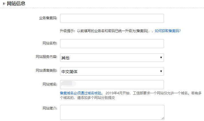 * 网站备案码获取请参看”如何获取网站备案码