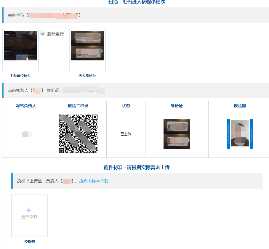 b.       扫描二维码进行企业营业执照核验\法人核验\网站负责人核验